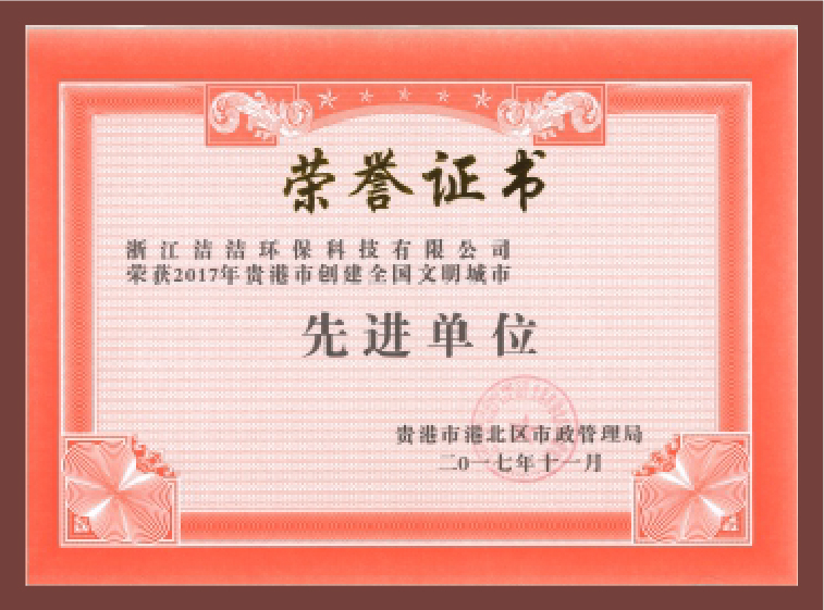 重要榮譽:“全國信用等級AAA級企業”、全國“重質量、守信 用企業”、“浙江省質量服務誠信AAA級企業”、中國中小商業 企業協會清潔行業分會常務理事員會單位